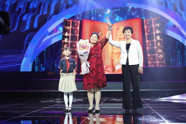 當(dāng)李芳老師的愛人與女兒走上舞臺時,臺下爆發(fā)出熱烈的掌聲;被李芳老師救下的四名學(xué)生為他們獻(xiàn)上鮮花,并將獎杯放在花團(tuán)錦簇的領(lǐng)獎臺上,舞臺上,孩子們朝著空空的領(lǐng)獎臺深深地鞠躬,舞臺下,觀眾們的眼淚在眼眶中轉(zhuǎn)了又轉(zhuǎn)。